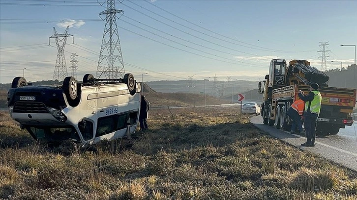 Otoyolun Gebze Balçık Gişeleri mevkisinde seyreden S.K. idaresindeki FF 6576 plakalı işçi servisi, bağlantı yolunda şarampole devrildi.