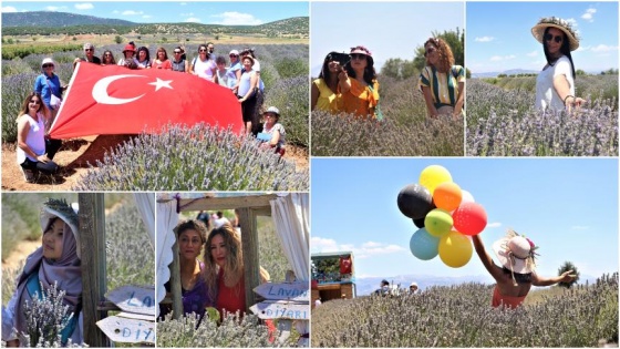 Hafta sonunu lavanta kokuları arasında geçirenler, mor renkli bahçelerde fotoğraf çekiyor, dondurmadan bala kadar birçok alanda lavantadan üretilen ürünlerin tadına bakıyor.