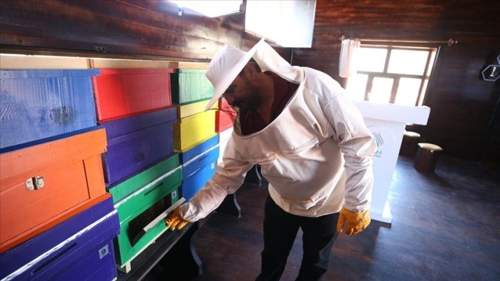 Kahramanmaraş'ta 380 dekarlık lavanta tarlasına kurulan ve arıların doğal ortamları ile bal üretim aşamalarının gözlemlenebileceği "arı evi", rengarenk kovanlarıyla dikkati çekiyor.