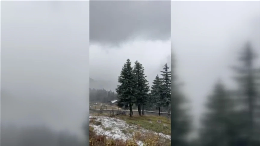 Ilgaz Dağı'nda birkaç gündür etkili olan soğuk havanın ardından alçak kesimlerdeki yağış, dağın zirvesinde yerini kara bıraktı.