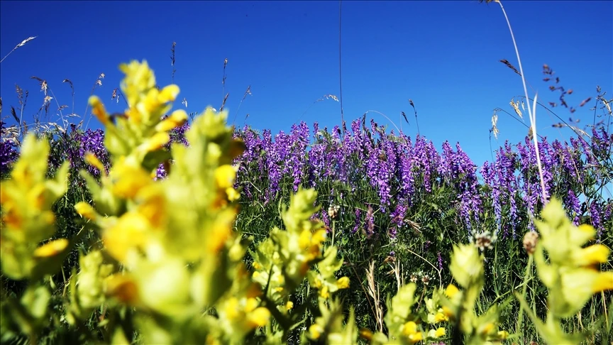 Havanın ısınmasına bağlı olarak karın yavaş yavaş zirveye doğru çekildiği Ilgaz Dağı'nın yüksek kesimleri rengarenk çiçeklerle bezendi.