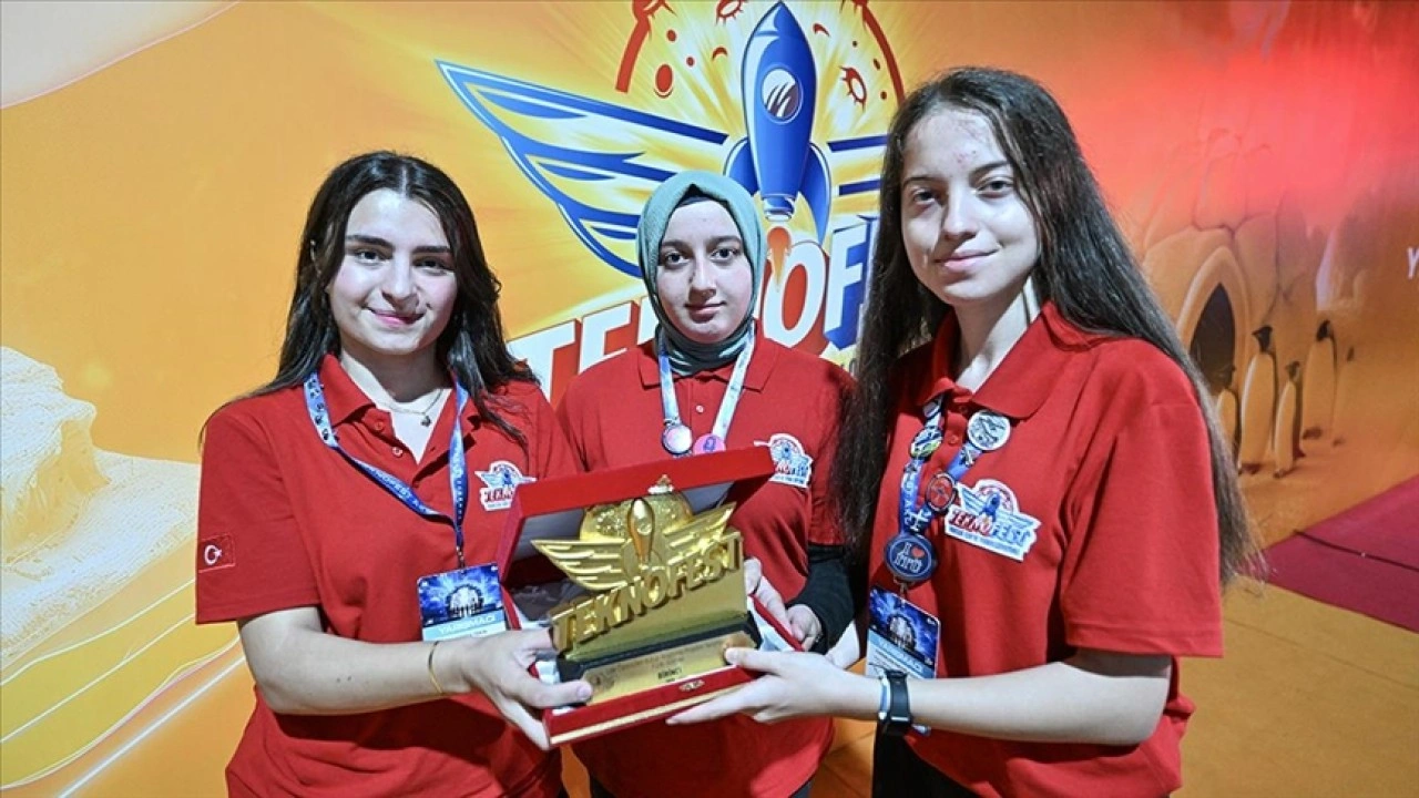 Sevinç yaşayan öğrenciler, Türkiye Teknoloji Takımı Vakfı ile Sanayi ve Teknoloji Bakanlığının ana yürütücülüğünde Adana Havalimanı'nda düzenlenen, Anadolu Ajansının (AA) global iletişim ortağı olduğu TEKNOFEST'te kurdukları stantta projelerini tanıttı.