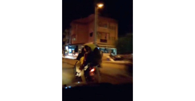 Olay, ilçenin Kemeraltı Mahallesi Mustafa Muğlalı Caddesi üzerinde akşam saatlerinde meydana geldi. Lise öğrencisi oldukları tahmin edilen kız öğrenciler, trafik kurallarını hiçe sayarak aynı anda 4 kişi birden elektrikli bisiklete binip trafiğe çıktı. Canlarını hiçe sayarak emniyetsiz bir şekilde yolculuk yapan öğrenciler, zaman zaman trafiği de tehlikeye düşürdü. Kural tanımadan cadde üzerinde yol almaya devam eden kızlar bir ara kavşakta ters yöne girerek az kalsın otomobilin altında kalıyorlardı. Sürücünün korna çalarak tepki göstermesine rağmen trafikte tehlikeli bir şekilde ilerlemeye devam eden kız öğrencileri, bir su firmasında servis elemanı olarak görev yapan Mustafa Kuzu cep telefonuna kaydetti. Kuzu, İHA muhabirine yaptığı açıklamada, “Şehirde abonelerime su servisi yapıyordum. Cadde üzerinde bir anda önüme üzerinde 4 kız öğrencinin bulunduğu elektrikli bir bisikletin geçtiğini görünce dehşete düştüm. Korna çalarak uyarmaya çalıştım ama kızlar beni duymadı bile o anda yanımda bulunan arkadaşıma cep telefonunun verdim ve çekmesini söyledim. Elektrikli bisikletler trafikte tehlike saçıyor” diye konuştu.