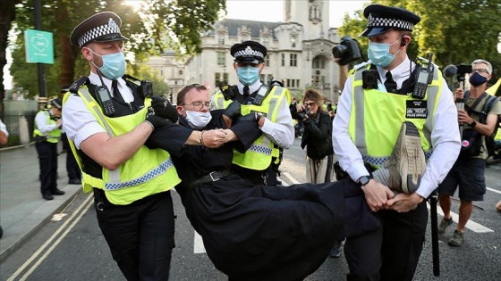 Londra polisinin konuya ilişkin açıklamasında, "bir acil durum görevlisine saldırmak, polisin çalışmasını engellemek ve kamu düzenini bozmak gibi suçlardan saat 18.00'e kadar 90 kişinin gözaltına alındığı" belirtildi.