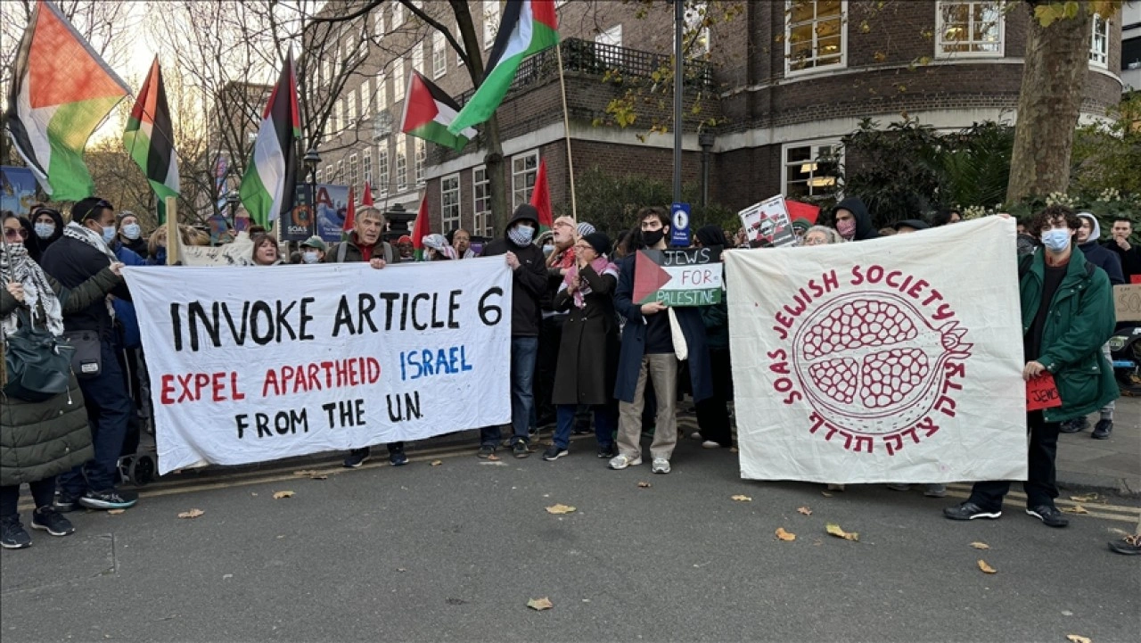 Albanese'nin başkentteki SOAS'ta yapacağı konuşma öncesi okul binasının dışında toplanan ve ellerinde "Ban Fran (Francesca'yı yasakla)" yazılı pankartları taşıyan İsrail yanlısı protestocular, "Bayan Albanese İngiliz üniversitelerinde hoş karşılanmıyor" sloganları attı.