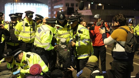Londra’da bir köprü, bir meydan ile 3 kavşağı işgal ederek trafiğe kapayan çevreci kampanya grubu Extinction Rebellion üyeleri, kentte yaşamı olumsuz etkilerken, polis eylemcilere müdahale etti.