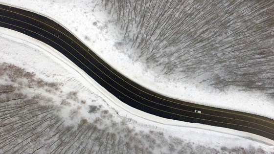 Bölgede devam eden kar yağışı ile oluşan manzarayı AA ekibi drone ile görüntüledi.