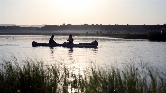 Longozun zengin florasına tanıklık etmek isteyenler Mert Gölü içerisinde kano ile gezinerek doğanın zenginliklerine tanıklık ediyor.