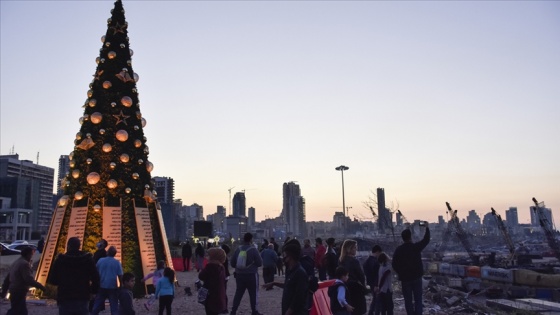 Patlamanın yaşandığı Beyrut Limanı'na vakıf noktada ışıklandırılan dev çam ağacı, patlamada hayatını kaybeden ve bazıların cesetlerine hala ulaşılamayan 190'ı aşkın kişinin isimleriyle süslendi.