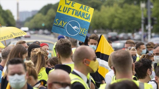 Alman hava yolu şirketi Lufthansa çalışanları, hükümetin kurtarma paketiyle ilgili ülkenin çeşitli şehirlerinde gösteri yaparak, hissedarlara "çalışanları düşünerek karar verme" çağrısı yaptı.