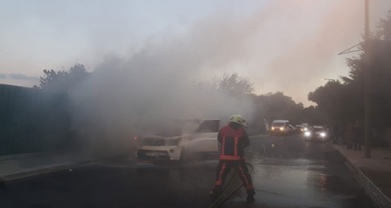 LÜKS CİPE HORTUMLA MÜDAHALEYangını gören vatandaşlar da yakınlardaki bir iş yerinden hortum çekerek suyla yangını söndürmeye çalıştı. Ancak vatandaşlarda yangının ilerleyişini durduramadı. İtfaiye ekiplerinin kısa bir süre sonra olay yerine gelmesinin ardından asıl müdahale başladı. Patlama tehlikesine karşı müdahale sırasında dikkatli oldukları görülen itfaiye ekipleri, aracın ön kaputunu açmakta da zorlandı. Ekipler daha sonra ön kaputu bir demir yardımıyla açmak zorunda kaldı.