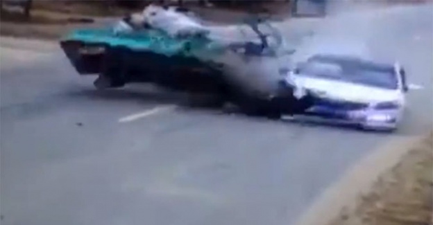 Hindistan’da önündeki triportör dönüş yapınca ona çarpmamak için manevra yapan diğer triportör, karşı yönden gelen ve aynı yöne manevra yapan otomobille çarpıştı. Feci kazada triportör adeta paramparça olurken, ağır şekilde yaralanan sürücü de yola savruldu. Hemen hastaneye kaldırılan adam, tüm müdahalelere rağmen kurtarılamadı. Diğer 2 sürücü ise gözaltına alındı.
