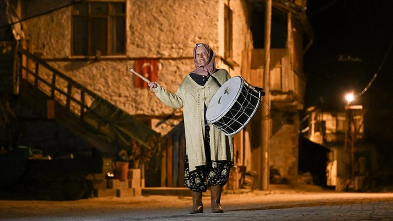 Sahur vakti yollara düşen 3 çocuk annesi Ayşe Alkan da ramazan süresince her gece Kuzköy sokaklarında dolaşarak köylüleri sahura kaldırıyor