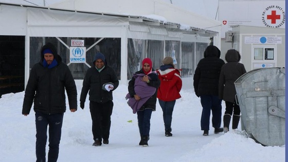 Umuda yolculuklarında daha fazla ilerlemelerine izin verilmeyen ve bu nedenle Makedonya'nın Sırbistan sınırındaki Tabanovce kasabasındaki kampta yaşayan sığınmacılar çetin kış şartlarında büyük zorluklarla karşılaşıyor. - Anadolu Ajansı