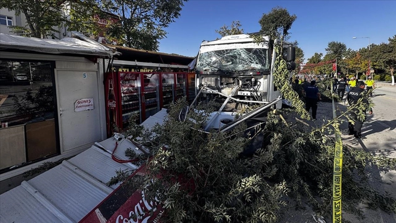 Kamyon yol kenarındaki 7 konteyner iş yerine çarptı.