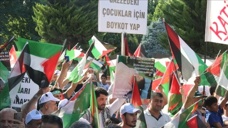 Büyükşehir Belediyesi önünde Kudüs Kardeşlik Platformunca düzenlenen mitingde, Türk ve Filistin bayrağı açan katılımcılar, taşıdıkları dövizler ve attıkları sloganlarla İsrail'i protesto etti.
