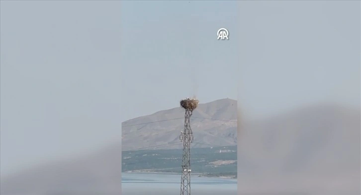 Malatya'nın Kale ilçesinde leylek yavrularının bulunduğu yuvanın yanması cep telefonu kamerasınca görüntülendi.