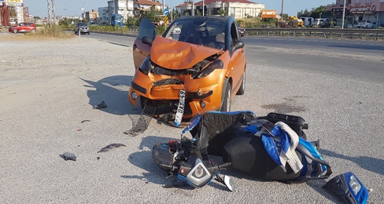 Edinilen bilgiye göre, Manavgat-Antalya D-400 Karayolunda Enes Malik Sula’nın kullandığı 07 DAY 49 plakalı otomobil ile Kemal Demirtaş’ın kullandığı plakasız motosiklet çarpıştı. Çarpışmanın etkisiyle motosiklet sürücü Demirtaş, 4-5 metre ileriye fırladı. Kafasına aldığı darbe ile ağır yaralanan Demirtaş, ambulansla Manavgat Devlet Hastanesine kaldırıldı.