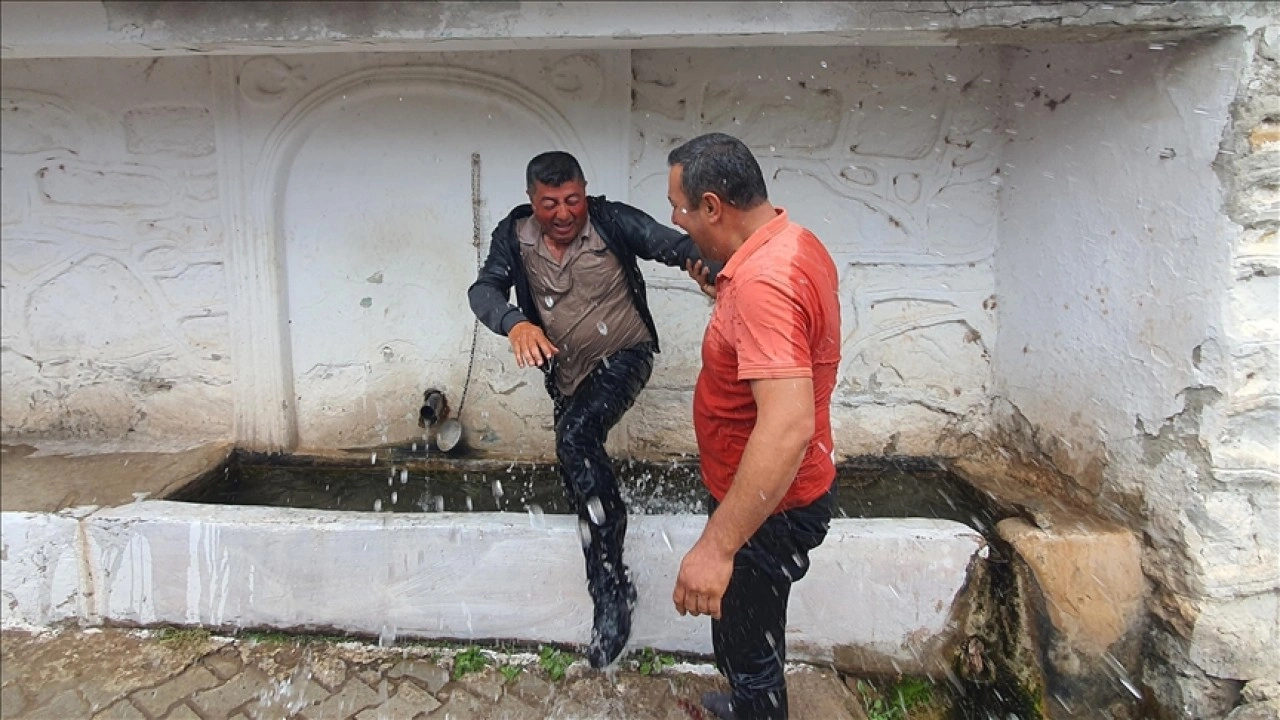 Mahallelinin kucaklayarak yalağa attığı "ilgisiz akraba" ıslandıktan sonra davul zurna eşliğinde oynayarak düğünlere renk katıyor.