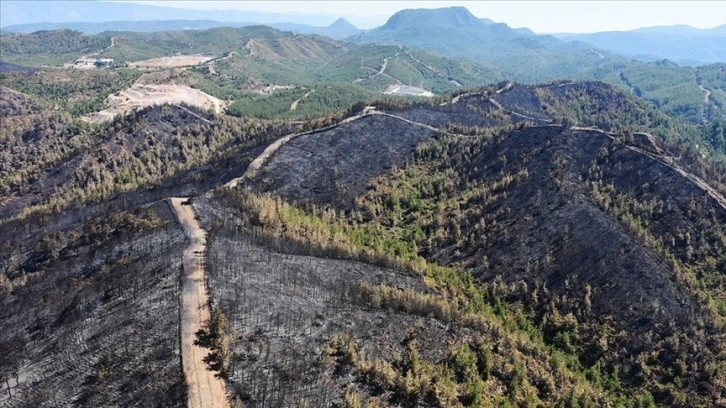 Yaklaşık 4 bin 500 hektarlık ormanın zarar gördüğü bölgeleri gezen helikopterden arazöz ekiplerinin bazı alanlarda çalışma yürüttüğü gözlendi.