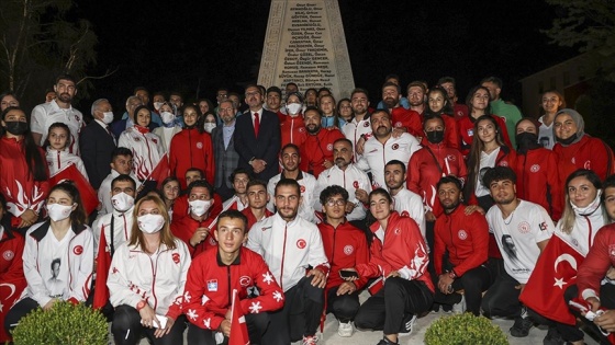 Şentop ile Kasapoğlu, daha sonra sporcularla, darbe girişimi sırasında Meclis'te ilk bombalanan alana karanfil bıraktı.