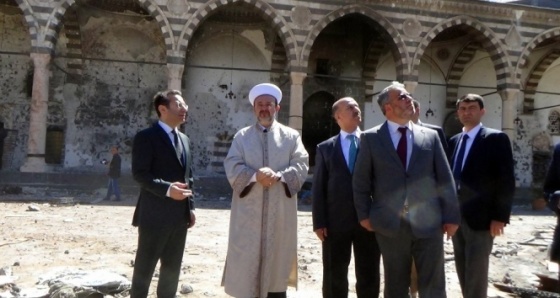 Siz neden şehirleri tahrip ediyorsunuz.’ Tarih boyunca asırlarca Ulu Cami’de Allah’a secde eden insanlar kardeş olmayı öğrendiler. Aslında son dönemde terör mağduru camilerimiz, mabetlerimiz oldu. Bu da onların başında geliyor. Elbette bir can, en az bir mabet kadar değerlidir. Ama bütün bu insanların kutsal değerlerini ifade ediyor cami ve mabetlerimiz. Terörün ne kadar kutsal tanımadığını, hiçbir değer tanımadığını bu manzara ortaya koyuyor. Allah bir daha bu şehirlerimize inşallah bu kötülükleri sokmasını, girmesini hep birlikte engelleriz. Kardeşçe camilerimizde rahmana secde ederek kardeş olmayı öğreniriz inşallah. Restorasyon konusunda keşifler başladı, en kısa zamanda başlayacak inşallah. 89 camimiz yara aldı, tahrip oldu. Bazıları yıkılıp yeniden yapılacak. Kendi alanımıza giren 89 camimiz var. Bunların tamamını inşallah birkaç ay içerisinde çok hızlı bir şekilde bitireceğiz. Hep birlikte orada kardeşçe ibadet etmeye devam edeceğiz. Bu camimiz Vakıflar Genel Müdürlüğümüzün himayesinde, biz de her türlü katkıya ve yardıma hazırız” dedi.