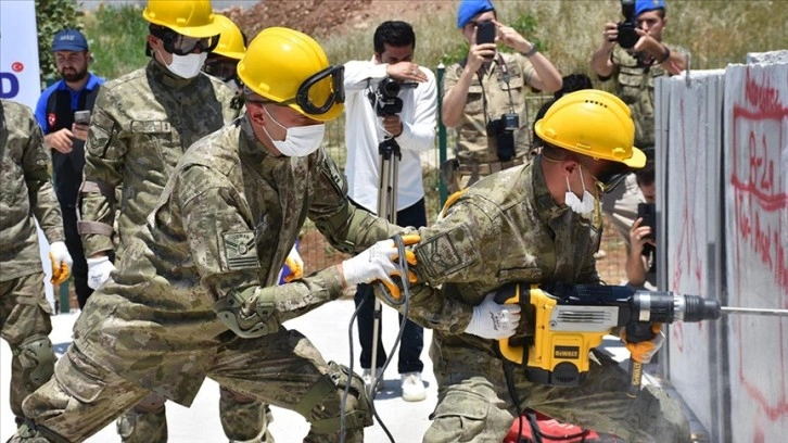 "Askerlerden oluşan timler her gün parkura gelerek bu zorunlu eğitimi alıyor. Her tim 18 kişiden oluşuyor. Her hafta 2 time eğitim veriliyor. Askerlerimiz olası bir depremde direkt enkaza müdahale edecek şekilde eğitiliyor."