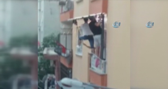 Dikkatsizlik ve tedbirsizlik sonucu büyük bir faciadan dönülen kazada yaralanan olmazken, balkon demiri üzerindeki 2 kişi uzun süre olayın şokunu yaşadı.