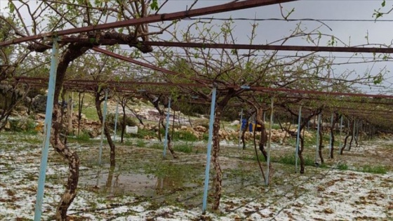 Mersin'in Erdemli ilçesi Esenpınar Mahallesi'nde dolu, sebze ve meyve ekili arazilere zarar verdi.