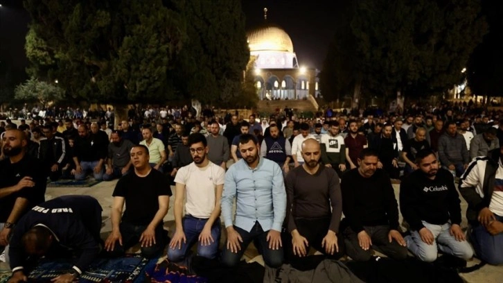 Kudüs ve Filistin Müftüsü Şeyh Muhammed Hüseyin'in hilalin görüldüğünü ve cumartesinin Ramazanın ilk günü olacağını açıklaması üzerine her yaştan binlerce Müslüman ilk teravih namazı için Mescid-i Aksa'ya geldi.