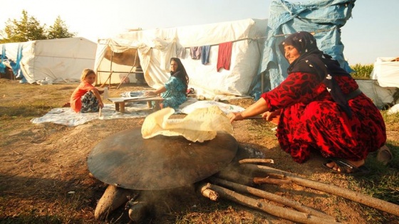 Kadınlar, taşıdıkları suyla, açık alanda yaktıkları ateş üzerinde yemeklerini pişirip yine aynı ateş üzerinde kaynattıkları suyla çamaşırlarını yıkıyor.