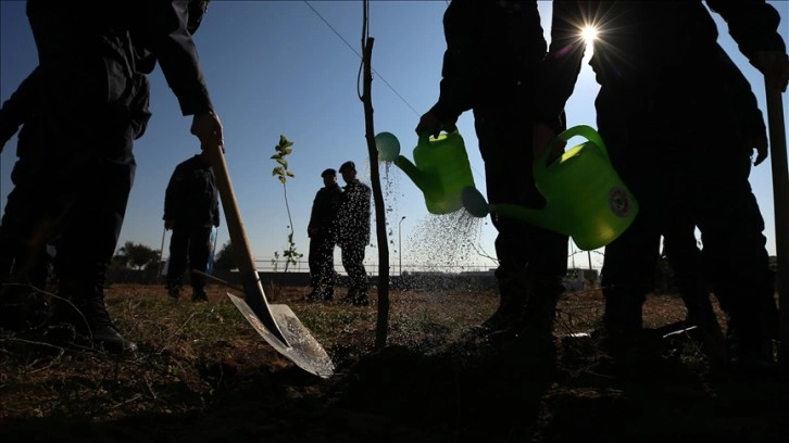 Konuşmaların ardından, Vali Kırbıyık, protokol üyeleri, öğrenciler ve vatandaşlar, fidanları toprakla buluşturdu.