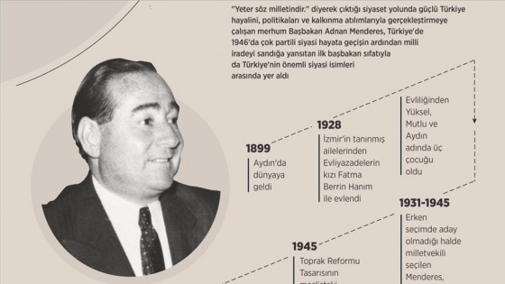 "Yeter söz milletindir." diyerek çıktığı siyaset yolunda güçlü Türkiye hayalini, politikaları ve kalkınma atılımlarıyla gerçekleştirmeye çalışan merhum Başbakan Adnan Menderes, Türkiye'de 1946'da çok partili siyasi hayata geçişin ardından milli iradeyi sandığa yansıtan ilk başbakan sıfatıyla da Türkiye'nin önemli siyasi isimleri arasında yer aldı.