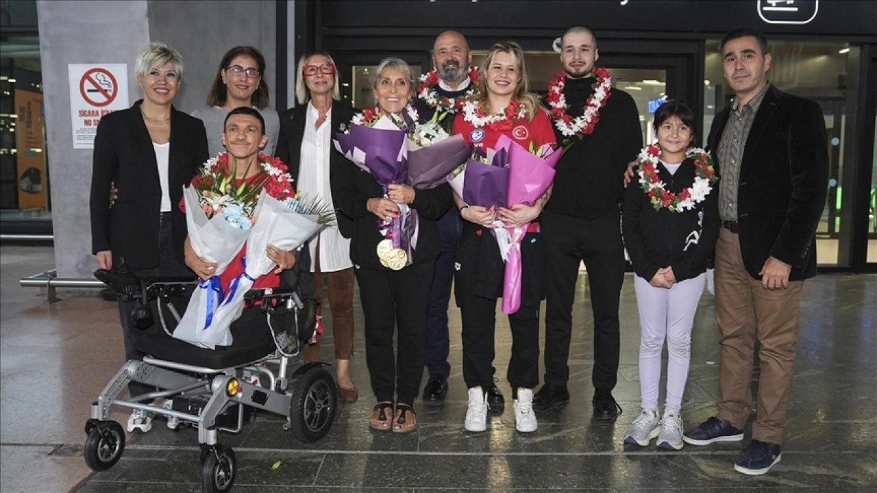 Singapur'dan İstanbul Havalimanı'na gelen ay-yıldızlı kafileyi Türkiye Yüzme Federasyonu yetkililerinin yanı sıra aileleri çiçeklerle karşıladı.