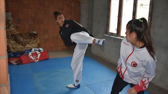 Milli sporcu Hatice Kübra İlgün evinin çatı katını tekvando salonuna dönüştürdü