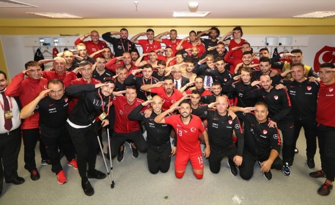2020 Avrupa Futbol Şampiyonası (EURO 2020) Elemeleri H Grubu'nun 7. haftasında Arnavutluk'u 1-0 yenen A Milli Takım'da teknik heyet ve futbolcular, soyunma odasında asker selamı vererek galibiyeti Barış Pınarı Harekatı'na katılan Mehmetçik'e adadı.