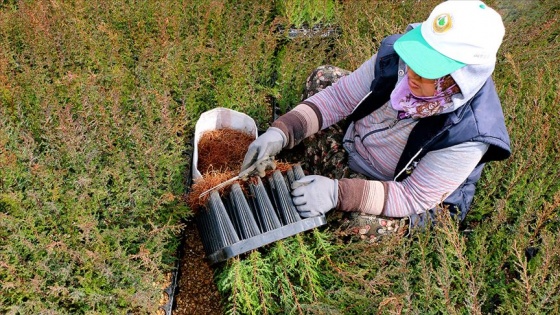 "Fidanlar bizim çocuklarımız"Fidanlıkta iki yıldır çalışan 42 yaşındaki Filiz Altun, tohumları toplayıp çimlendirdikten sonra çevresindeki otları aldığını belirtti.