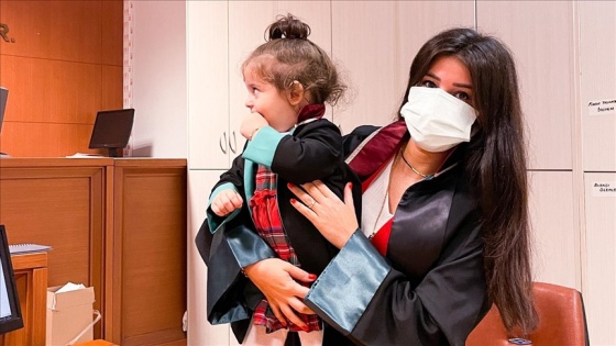 Temsili cübbe giydirdiği 14 aylık kızı Beliz ile duruşmaya katılan ve fotoğrafları sosyal medyada ilgi gören avukat anne İpek Biter Gündüz, "Adliyenin ciddi ortamını Beliz biraz pozitifleştirerek yumuşatıyor." dedi.