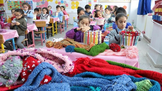 Fırsat buldukları her anı öğretmen Taş'ın aldığı yün ipliklerle atkı örerek değerlendiren öğrenciler, hem el becerilerini geliştiriyor hem de sosyal sorumluluk çalışmaları konusunda bilinçleniyor.