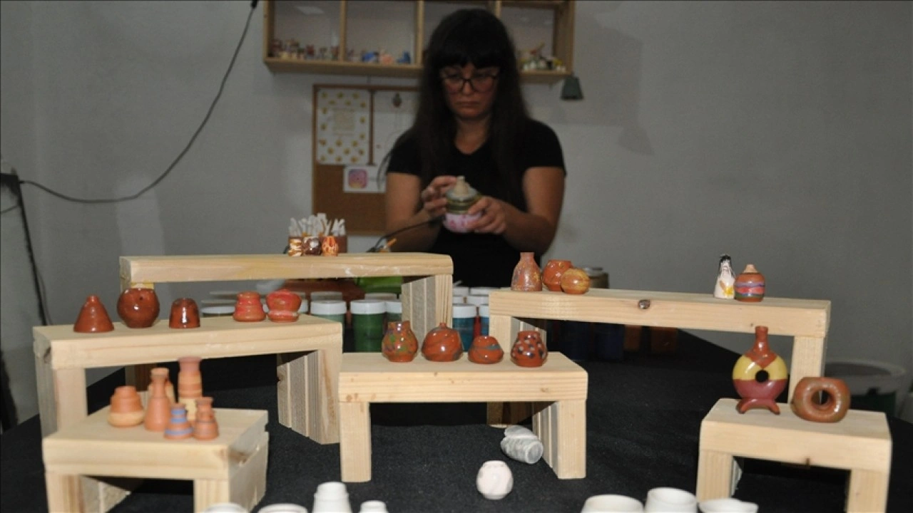 Esra Köse Dönmez, AA muhabirine, minyatür seramik yapımı için küçük bir çömlekçi tornasının gerekli olduğunu, büyük tornaya göre daha hızlı üretim yapabildiğini söyledi.