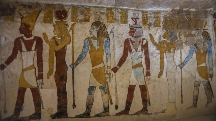 Kayalığın içinde yer alan Mısır'da yaklaşık 2 bin 600 sene önce hüküm süren 26. hanedan dönemine ait mezarlık, firan dönemlerinde kutsal önem atfedilen güneş ve ayın döngüsüne dair tasvirleriyle dikkati çekiyor.