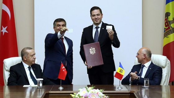 Anlaşmayı imzalayan Kaymakçı ve Ulianovschi, iki ülke arasında kimlikle seyahate atfen kimliklerini çıkararak iki lidere gösterdi.