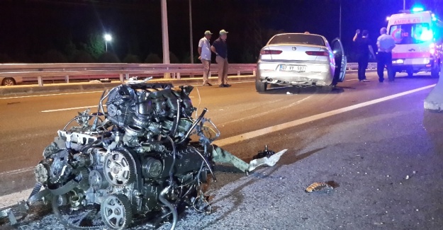 Otomobilden geriye kopan motoru ve metrelerce fren izi kaldı
