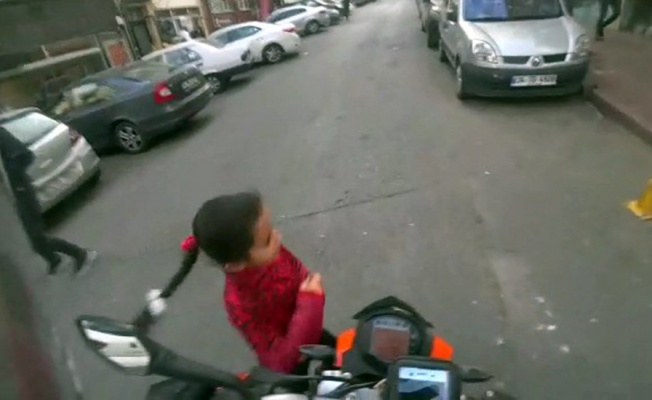 Fatih Hırka-i Şerif Mahallesi Balipaşa Caddesi üzerinde geçtiğimiz Cumartesi günü saat 18.00 sıralarında motosiklet sürücüsü Yalçın M., iş yerinden çıkarak evine doğru gitmeye başladı. Bir süre sonra caddeye giren sürücünün önüne arkasını dönüp koşmaya başlayan Suriye uyruklu küçük bir kız çıktı. Yola atlayan kızı dikkati sonucu son anda fark eden sürücü frene basarak durmayı başardı ancak hafifçe dokunduğu kız büyük korku yaşadı. Ezilmekten son anda kurtulan küçük kız, panikle yol kenarına kaçtı. Ağabeyinin azarladığı minik kız ağlamaya başladı. Motosiklet sürücüsü ise kızın ağabeyini uyararak yoluna devam etti. Yürekleri ağza getiren o anlar motosikletlinin kask kamerasına yansıdı.