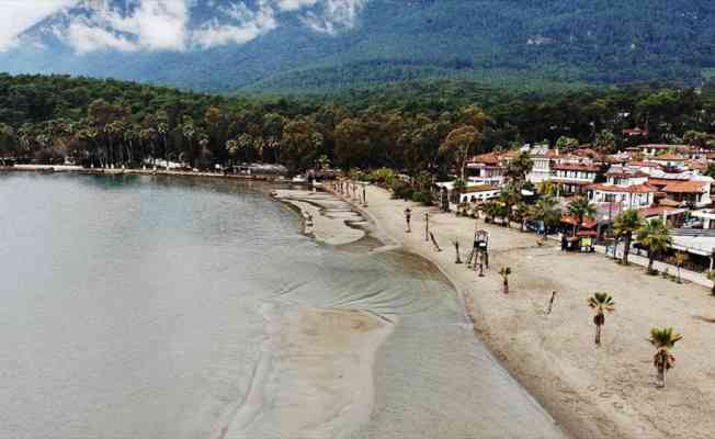Muğla'nın Ula ilçesindeki Akyaka sahilinde deniz suyu kıyıdan yaklaşık 40 metre çekildi.