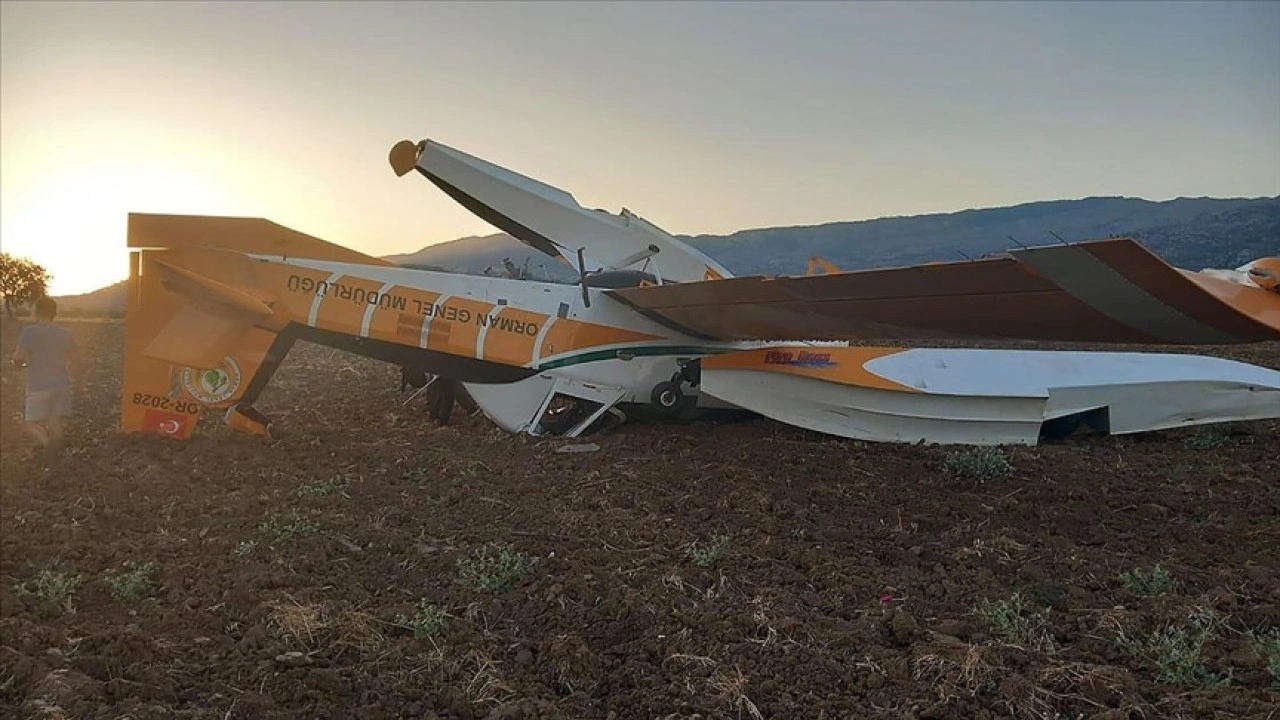 Aydın'daki orman yangınına müdahale etmek için Muğla'dan kalkış yapan uçağın, henüz belirlenemeyen nedenle Yatağan ilçesindeki bir tarlaya zorunlu iniş yaparak yan yattığını söyledi.