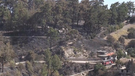 Muğla'nın Menteşe ilçesinde çıkan ve Zeytinköy Mahallesi'nin tamamını etkileyen orman yangınında, mezarlık da zarar gördü.