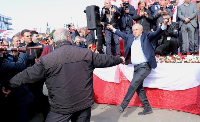 Samsun’da Cumhuriyet Halk Partisi (CHP) Tekkeköy Belediye Başkan adayı Tansu Çıkış’ın mitingine katılan eski CHP Yalova Milletvekili Muharrem İnce, vatandaşlarla birlikte cigoş oynayıp, halay çekti.