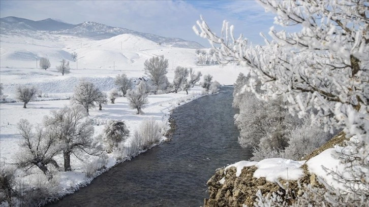 Dondurucu soğuklar sebebiyle Munzur Vadisi Milli Parkı'ndaki kavak, söğüt, meşe ve yabani meyve ağaçları kırağıyla kaplandı.