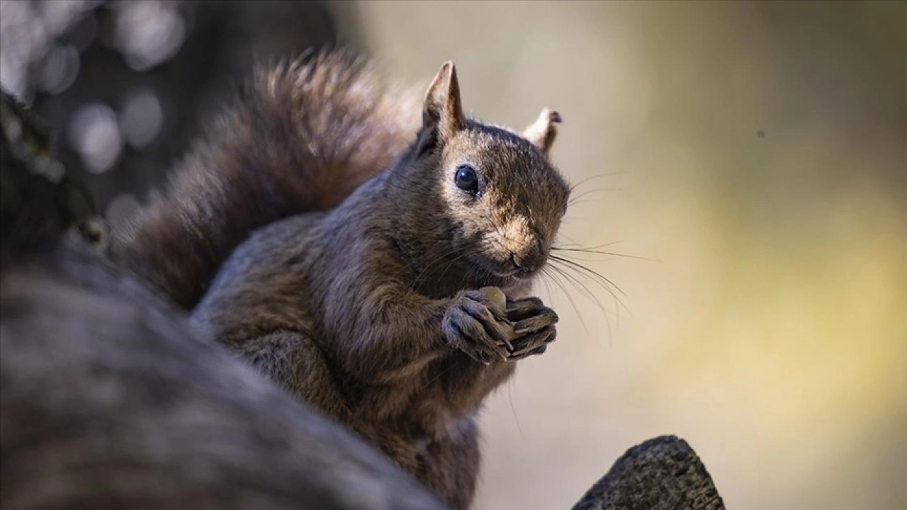 Milli parktaki belirli alanları mesken tutan sincaplar, günün belirli saatlerinde yuvalarından ayrılarak ormanlardaki ağaçlarda yiyecek arıyor.